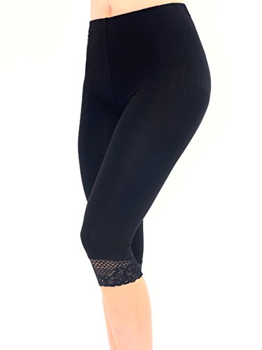 Leggings con bordo in pizzo, lunghezza al ginocchio. Tessuto altamente elastico, morbido, confortevole e traspirante, si adatta bene al corpo.