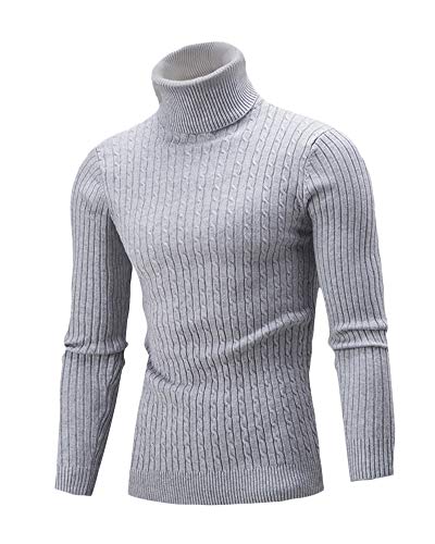 Liangzhu Maglione Dolcevita Uomo Maglia Pullover Slim Fit Aderente Collo Alto Grigio L