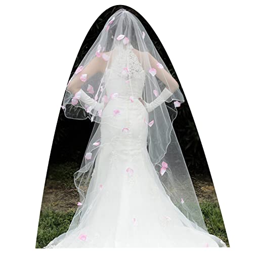 Lianshi velo da sposa Velo da sposa lungo singolo fiore rosa lungo Adatto per matrimoni feste 300 cm