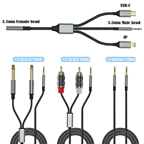 【Informazioni sul prodotto】:You will receive: 1 × USB C/i-p/3.5mm to 3.5mm female cable, 1 × 3.5mm male to 2 RCA cable, 1 × 3.5mm male to 6.35 cable, 1 × 3.5mm male to 3.5mm male cable, You can use it in combination or separately. Multiple interfaces can be switched freely according to your needs