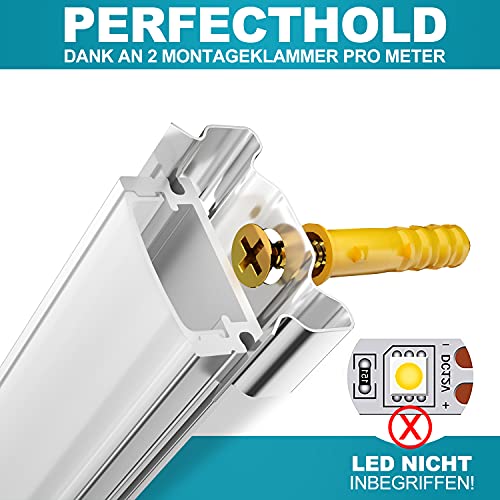LIAOINTEC - Profilo in alluminio a forma di U, 10 x 1 m, con coperchio bianco latte, tappi terminali e clip di montaggio per strisce LED, strisce LED (striscia LED / nastro fino a 12 mm inclusa)
