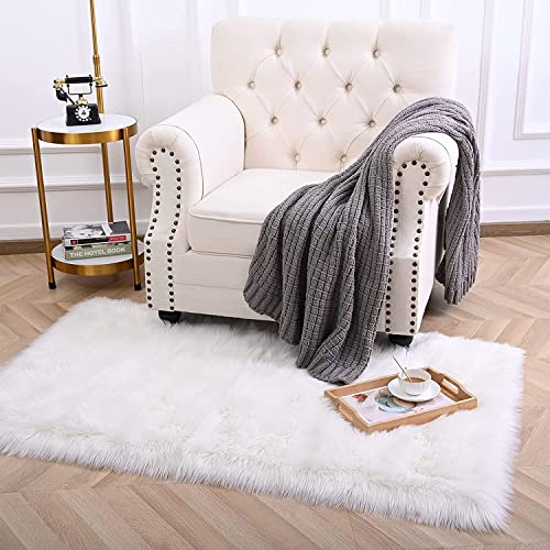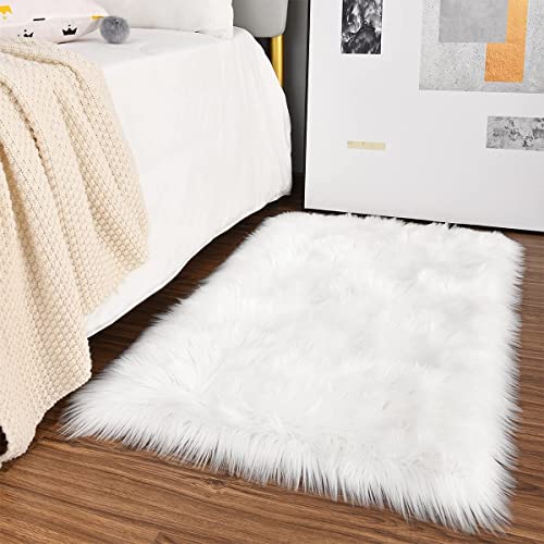 LIAOXIONG Tappeti in pelle di pecora,tappeti in pelle di agnello,tappeti quadrati in pelle di agnello in pelliccia artificiale Adatto per camere da letto e soggiorni (bianco, 60_x_90_cm)