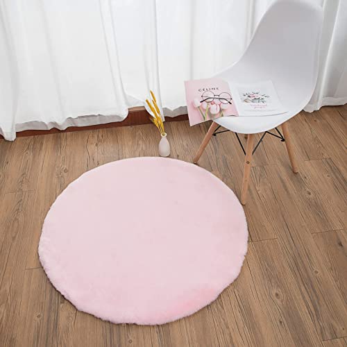 LIAOXIONG Tappeto in pelliccia di coniglio artificiale,tappeto rotondo in pelliccia di coniglio,adatto per camera da letto e soggiorno (rosa, 45x45cm)