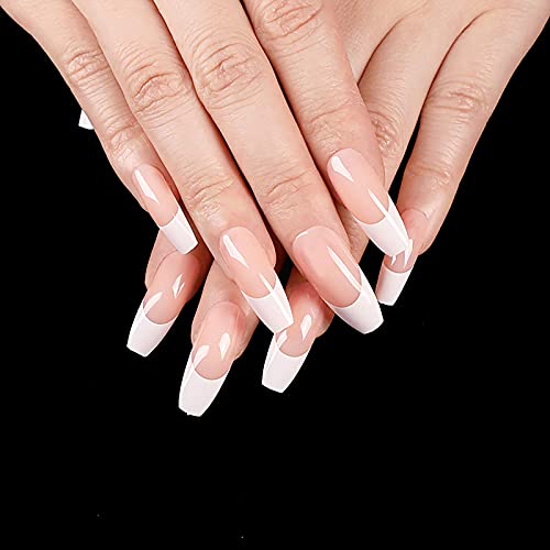 LIARTY 120 pezzi di Unghie Finte Francese, Artificiale Falsi Unghie Lungo Finte in Acrilico Copertura Completa Naturali Unghie Finte per Donne e Ragazze