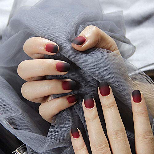 LIARTY 24 pezzi di Unghie Finte Opache Nero Rosso, Artificiale Falsi Corto Unghie Finte in Acrilico Copertura Completa Unghie Finte con Colla per Donne e Ragazze