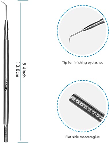 Strumento per sollevare le ciglia: la testa appuntita viene utilizzata per raccogliere e sollevare le ciglia e la testa piatta può facilmente misurare la lunghezza delle ciglia, scegliere la lozione per ciglia e tenere la colla. Lo specchio metallico può facilmente osservare le ciglia.