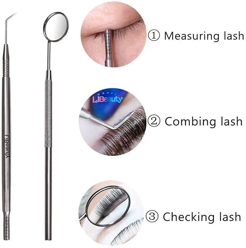 Libeauty - Kit per ciglia e extension per ciglia, in metallo, per trucchi, specchi, applicatori per ciglia professionali o personali (argento)