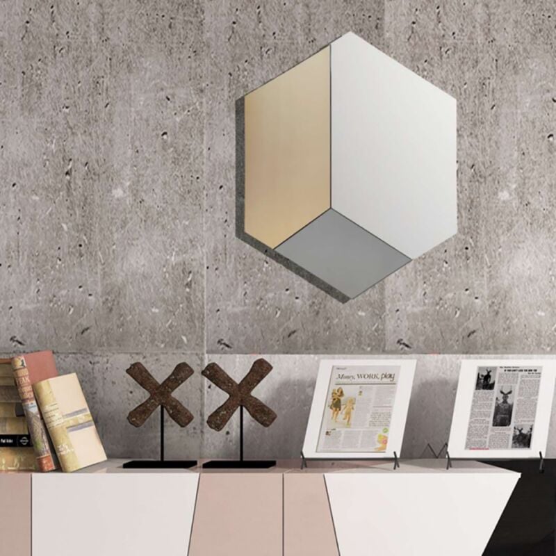 Specchio esagonale JACOB 70X80 cm con specchio chiaro,specchio fumè e specchio bronzo.