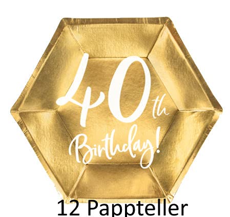 I 12 piatti usa e getta di dimensioni 20 cm sono realizzati in cartone robusto e stampati con un'elegante scritta "40th Birthday". La tonalità dorata lucida conferisce ai piatti un fascino particolare e li rende eleganti e di alta qualità.