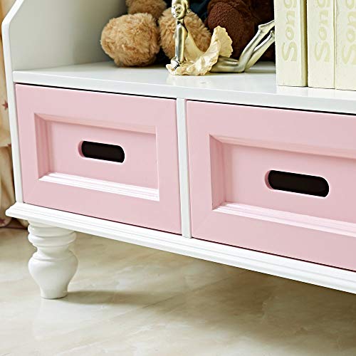 Libreria per bambini con cassetti in legno per bambini, libreria, organizer per libri per bambini, scaffale a 3 ripiani, colore: bianco rosa
