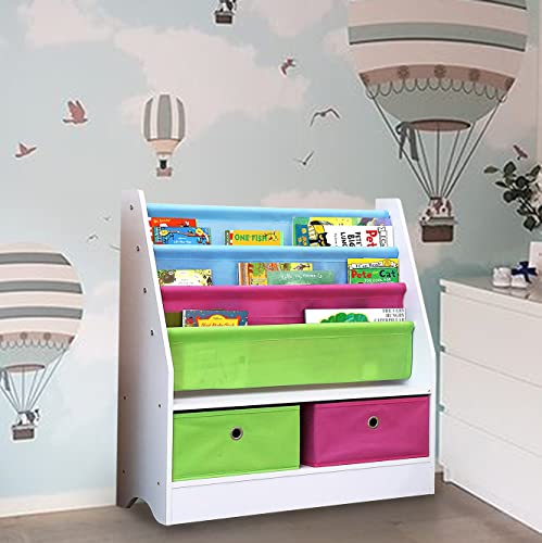 Libreria per Bambini Scaffale per Libri Libreria Montessori Libreria per Bambini Giocattoli per Bambini Mobili Scaffale per Bambini con 3 Scomparti e 2 Cassetti per Stanza dei Giochi, Cameretta