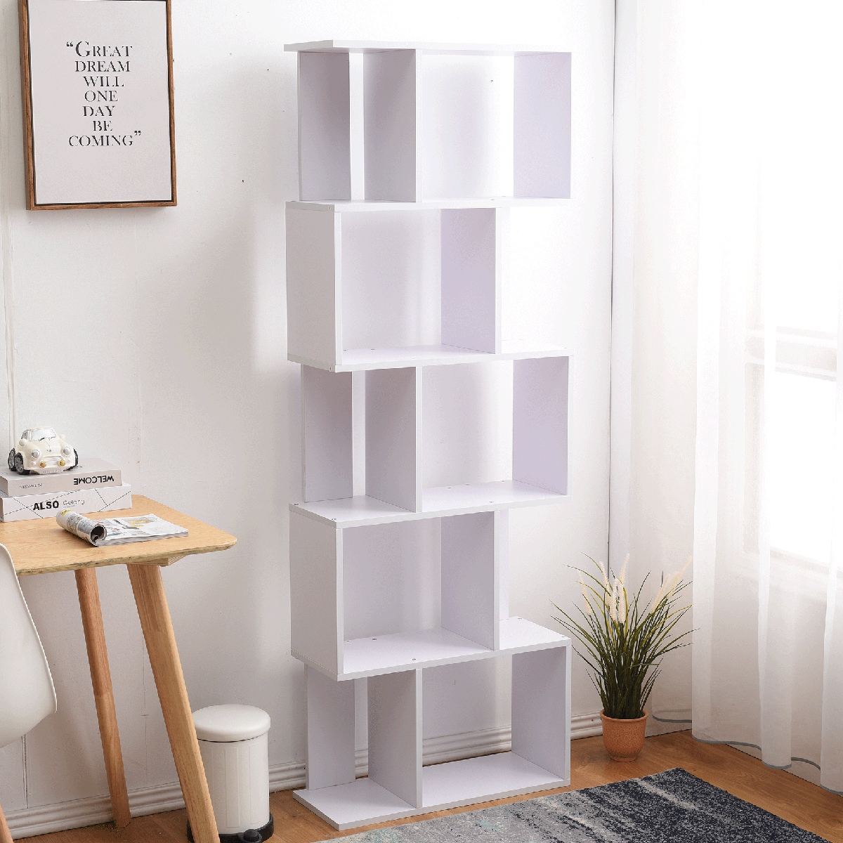 Scaffale Libreria Madrid Bianco 5 Ripiani Legno Design 172,5x60x24,5. Scaffale, libreria con ripiani, ideale per il vostro ufficio, per riporre libri, documenti o altri oggetti o come complemento d'arredo per dare un tocco di originalità e modernità alla vostra stanza