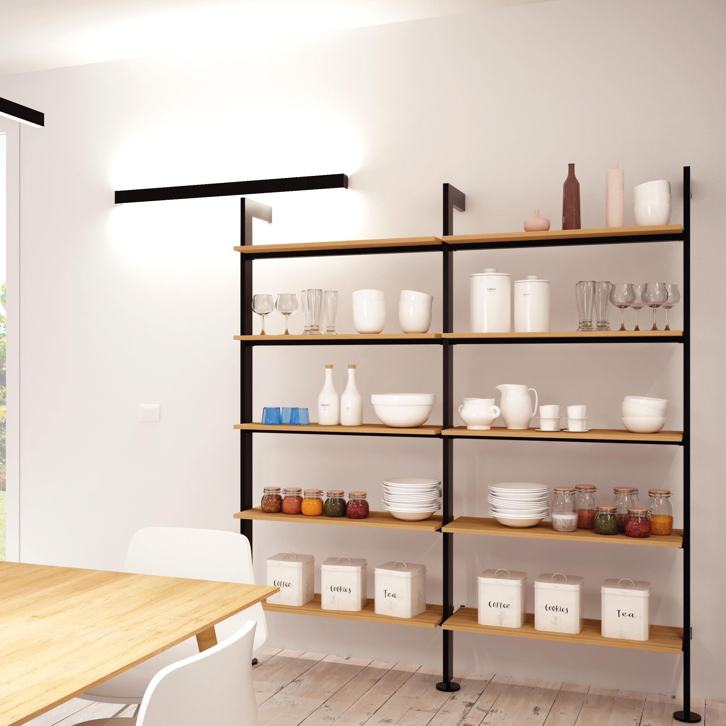 LIBRERIA PAVIMENTO-PARETE IN ALLUMINIO COMPOSTA DA DUE MODULI CIASCUNO LARGO 90 CM. L'ALTEZZA DELLA LIBRERIA è DI 208 CM + 6 CM DI REGOLAZIONE MEDIANTE I PIEDINI.