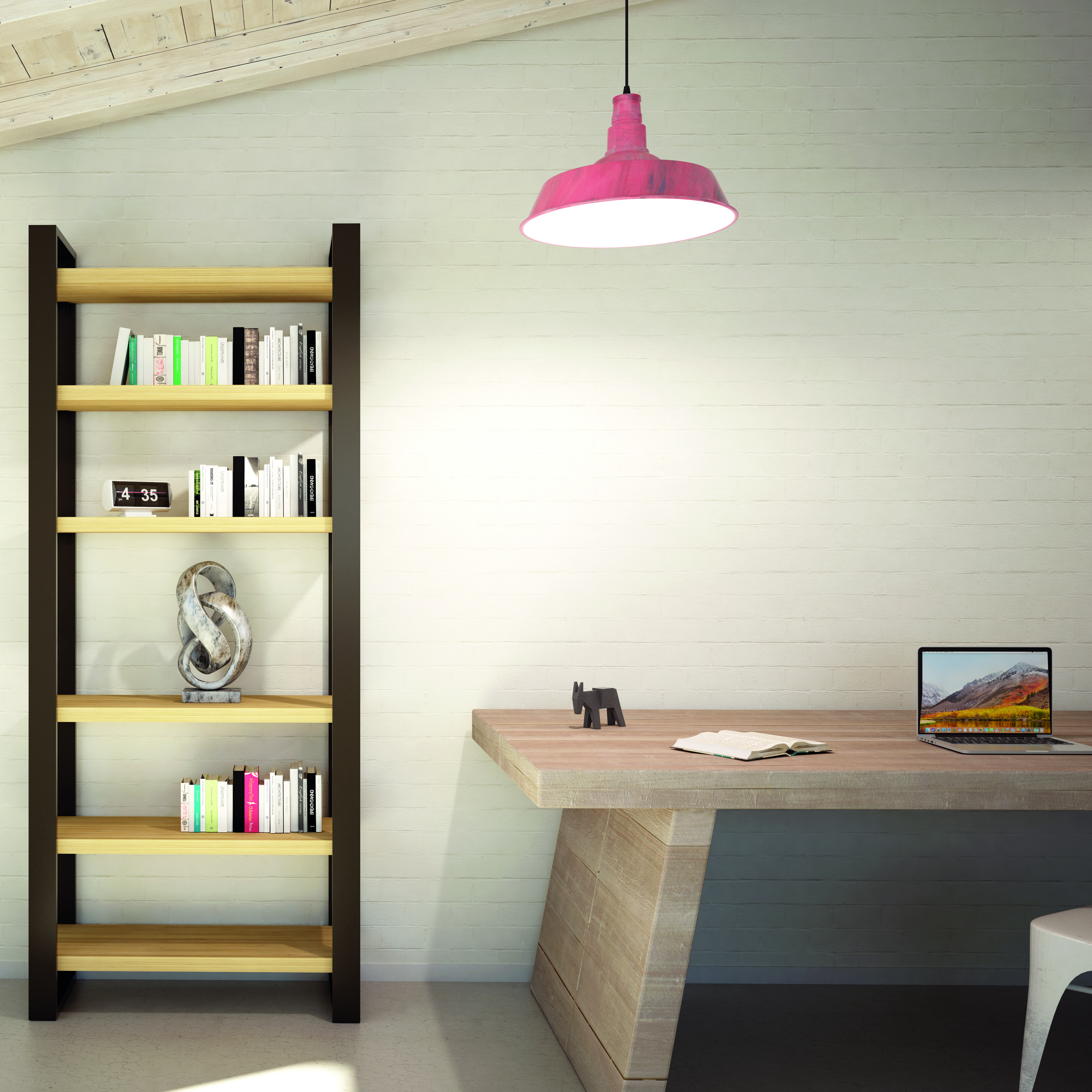 Libreria a pavimento in alluminio completa di 6 mensole in melaminico rovere chiaro.