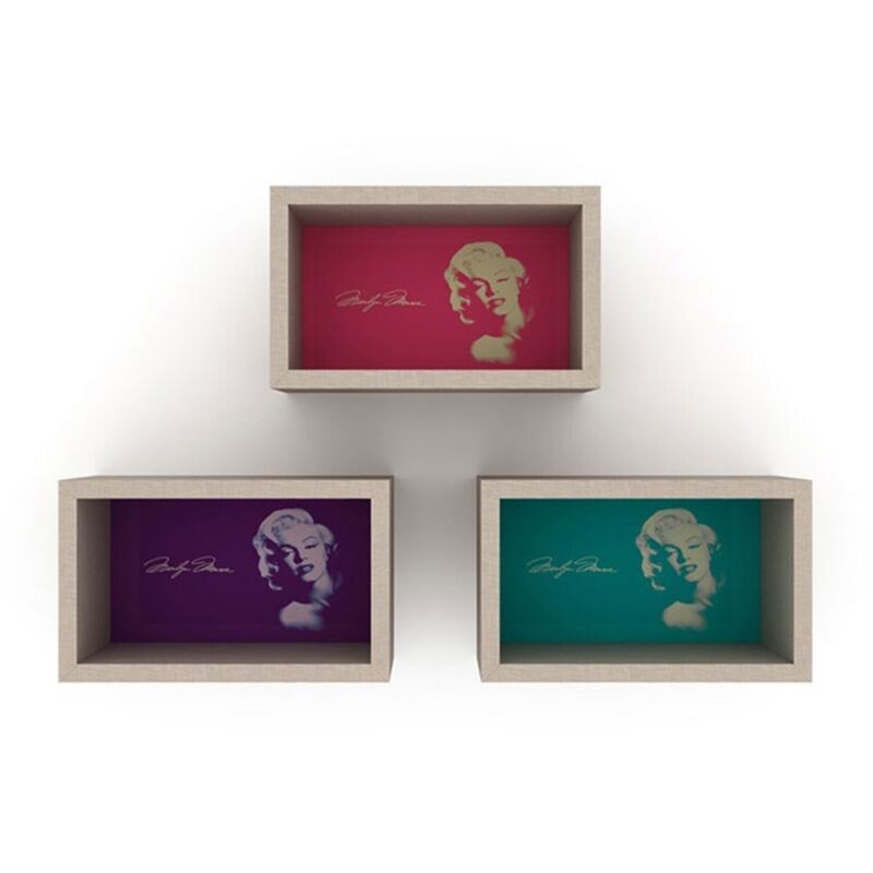 Libreria pensile composta da 3 quadri Monroe RF141104 Set di 3 quadri pensili, ideali da usare come libreria o porta oggetti. Sul retro viene rappresentata in vari colori, la celebre MARILYN MONROE. Puoi disporli a tuo piacimento, per produrre soluzioni funzionali e decorative, che meglio si sposano con i tuoi ambienti. Caratteristiche: Materiale truciolare di qualità Il prodotto non necessita di montaggio Dimensioni: 37x17x23h RIF141104 Perchè scegliere la libreria pensile? E' l'alternativa di design alla solita libreria. Bella e funzionale. E' adatta per contenere qualsiasi tipo di oggetto, non solo libri. E' resistente e solida. Altezza: 23 Larghezza: 37 Profondità: 17 Contiene Legno: Si
