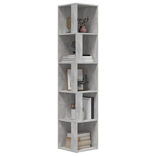 Libreria, Vetrina da Corridoio, Adatto a Cucine, Sale da Pranzo, Soggiorni, Ingressi, Camere da Letto o Uffici, Armadio Angolare Grigio Cemento 33x33x164,5 cm in Truciolato