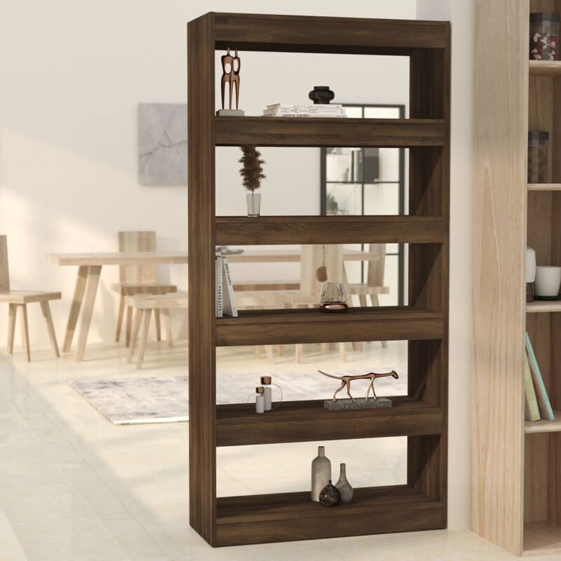 Caratterizzata da un design elegante e classico, questa libreria in legno sarà un'aggiunta pratica e decorativa al vostro arredamento. Lo scaffale per libri è stabile e resistente. La libreria offre ampio spazio per mantenere in ordine e a portata di mano riviste, libri, DVD, dispositivi multimediali e altri oggetti decorativi. Inoltre, come mobile versatile, può fungere anche da divisorio, caratteristica che la rende una scelta perfetta per il corridoio o per qualsiasi altro spazio abitativo. L'armadio per libri è facile da pulire con un panno umido. Colore: Rovere marrone Materiale: Truciolato Dimensioni: 80 x 30 x 166 cm (L x P x A) Può essere utilizzata come libreria o divisorio Assemblaggio richiesto: Sì ATTENZIONE: Per evitare il ribaltamento questo prodotto deve essere utilizzato con il dispositivo di fissaggio a parete fornito. Legal Documents: Maggiori dettagli su come evitare il rovesciamento dei mobili sono disponibili qui