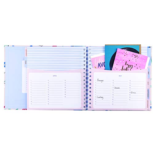 Tabella riassuntiva di anniversario nella parte anteriore per una rapida consultazione. Rilegatura ad anelli, con chiusura elastica per tenere tutto salvo.