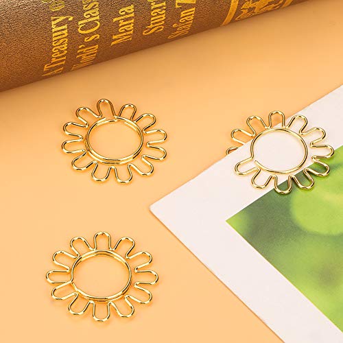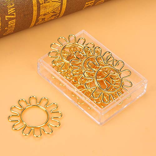 Clip per libri placcati in metallo placcati in metallo, 10 pezzi a forma di girasole Classificatore di file di graffette con scatola di immagazzinaggio per documenti Foto Biglietti Forniture di cancel