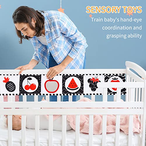 【Giocattoli sensoriali interattivi】Il libro per neonati Tummy Time Book Il libro per neonati ad alto contrasto è dotato di 8 lacci, che possono essere legati alla culla, si ripiega e può essere facilmente trasportato in viaggio e può essere legato alla carrozzina o dietro il seggiolino auto.