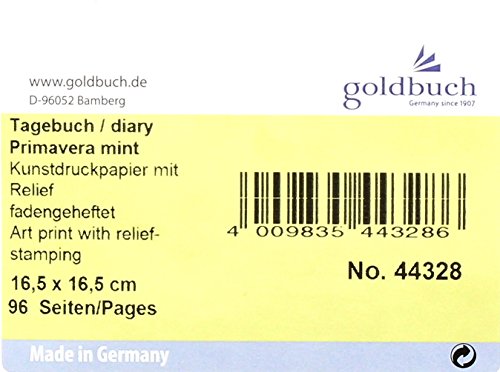 'Contenuto della confezione: 1 GOLDBUCH diario "Primavera Mint, 44328, Numero di pagine: 96 pagine bianche, dimensioni: 16,5 x 16,5 cm, materiale: stampa artistica con stampa dorata e in rilievo, colore: Menta