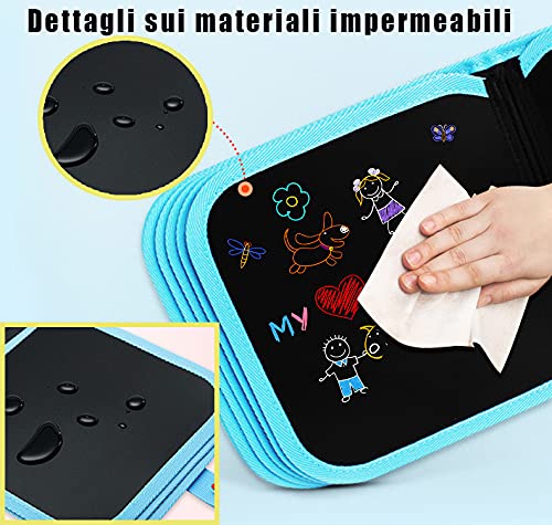 Libro da colorare riutilizzabile per bambini, tavolo da disegno lavabile, portatile con 12 matite colorate, 14 pagine