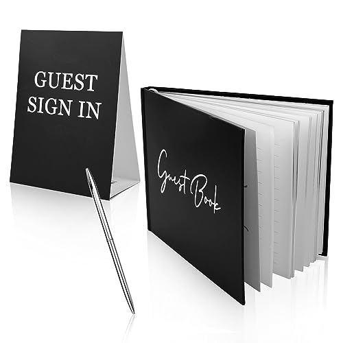 Libro Degli Ospiti Matrimonio, Elegante Copertina Rigida Libro di Nozze con Penne 100 Pagine Bianche Libro degli Ospiti per Ricevimento di Nozze Baby Shower Festa (Nero)