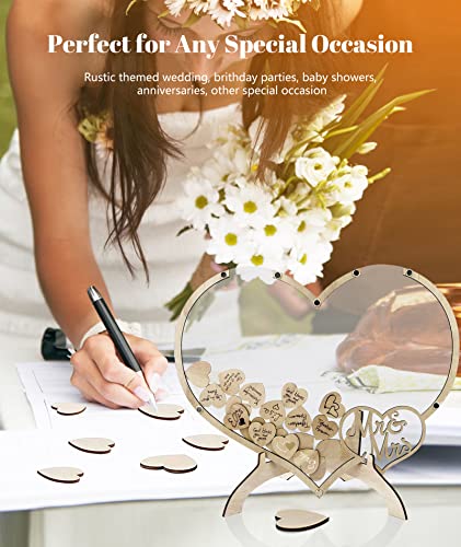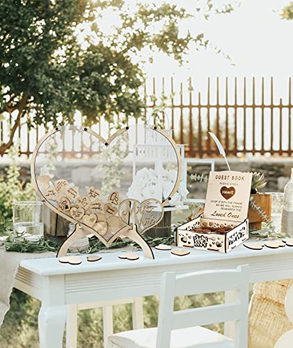 Libro Degli Ospiti Matrimonio, Libro Degli Ospiti di Nozze in Acrilico con 100 Cuori in Legno Supporto Lavagna Piccola Scatola Guest Book per Invitati Compleanni Festa (Doppio cuore d'amore)