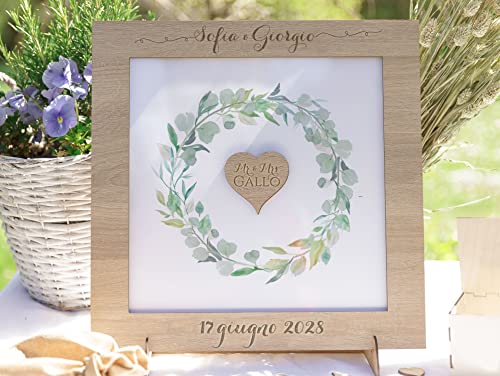 Libro degli ospiti per matrimonio personalizzato legno cornice cuori lanciati vintage nascita Matrimonio Guest Book