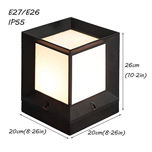 Libuty Piazza Cubo moderna E27 pilastro Alberino della lampada con l'acrilico Ombra IP55 impermeabile di alluminio nera colonna di metallo Patio giardino all'aperto Paesaggio Luce piattaforma recinzio