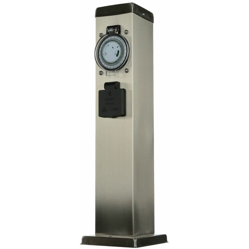 Dettagli del prodotto Materiale: Acciaio inox Dimensioni: larghezza: 90 mm, altezza: 435 mm, lunghezza: 90 mm Attacco: Classe di protezione dagli spruzzi: IP44 Colore: Acciaio inox Peso: 1250 grammo Descrizione del prodotto Moderna colonna in robusto acciaio inox con una presa di corrente e timer integrato per giardino e terrazza La colonna energetica è una pratica alternativa al classico tamburo per cavi e fornisce alimentazione per tosaerba, luci esterne o grill elettrico senza dover srotolare i cavi. Larghezza: 90 mm, altezza: 435 mm, lunghezza: 90 mm Le alette proteggono la presa esterna da pioggia e insetti penetranti Base: 120 x 120 mm, distanza tra i fori: 90 mm IP44: resistente agli spruzzi, elevata protezione dall'umidità;