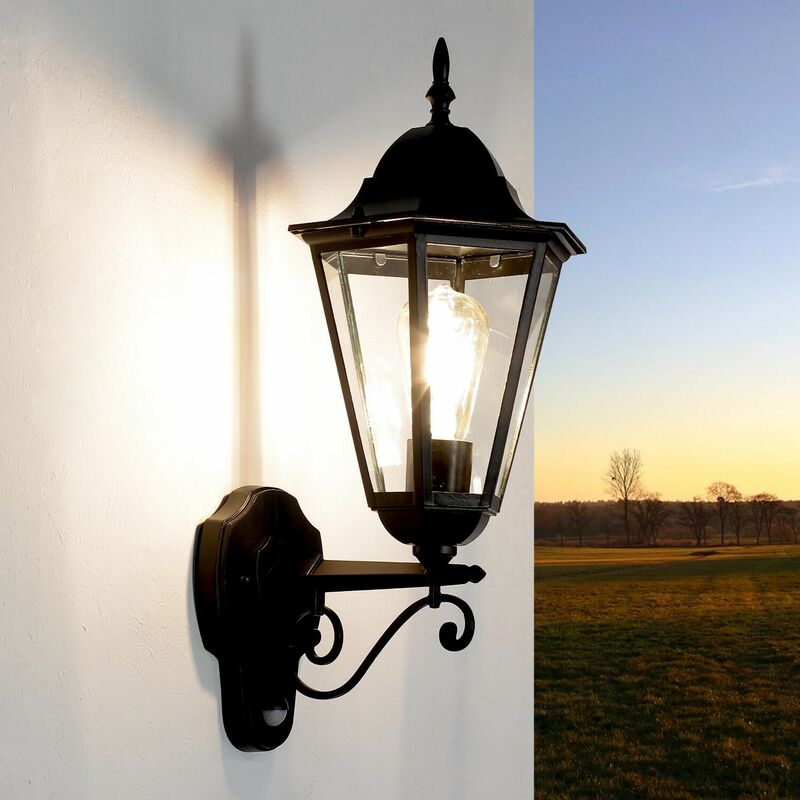 Dettagli del prodotto Materiale: Alluminio, vetro Dimensioni: larghezza: 203 mm, altezza: 505 mm, profondità: 285 mm Attacco: 1x E27 100W konventionell oder 20W CFL Classe di protezione dagli spruzzi: IP44 Colore: Nero Peso: 1800 grammo Altre immagini