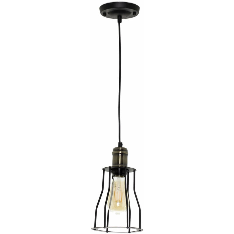 Dettagli del prodotto Materiale: Metallo Dimensioni: larghezza: 150 mm, profondità: 200-1200 mm, profondità di sospensione: 200-1200 mm, diametro: 150 mm Attacco: E27 fino a 40W Watt Classe di protezione dagli spruzzi: IP20 Colore: Nero Peso: 665 grammo Descrizione del prodotto Elegante lampada a sospensione dal design vintage Il paralume decorativo aperto in metallo rende la lampada a sospensione un punto di luce decorativo Il materiale di montaggio è incluso nella confezione Lunghezza del cavo: circa 150 cm - accorciabile individualmente | Diametro del supporto a soffitto: 12 cm