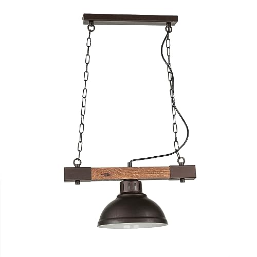 Licht-Erlebnisse Lampada a sospensione in stile country in legno e metallo marrone E27 L:40 cm dal design vintage ideale in cucina, soggiorno e sopra al tavolo da pranzo