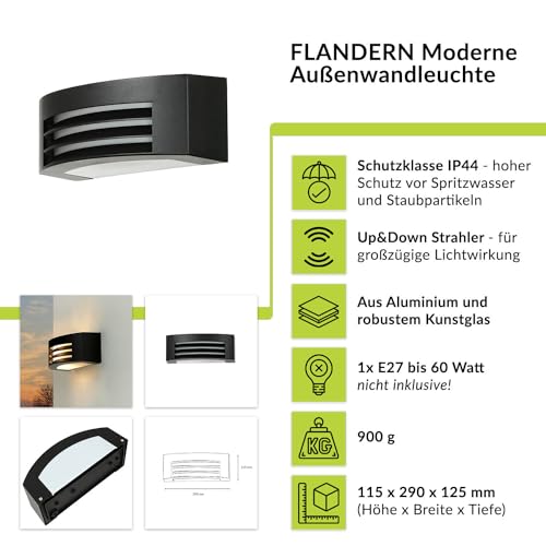 Licht-Erlebnisse Marittima Lampada applique per esterni FIANDRE IN NERO / IP44 resistente alle intemperie E27 230V / LUCE PER ESTERNI ILLUMINAZIONE cortile giardino lampada da parete