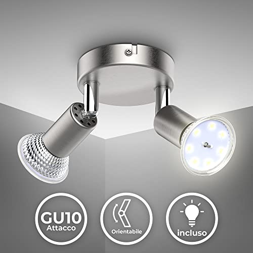 B.K.Licht, Faretti LED Interno da Soffitto, diametro 11cm, Applique da parete interno, Plafoniera soffitto, Luce calda, 2x GU10 da 3W, 250Lm, Luci led, Lampadario cucina bagno soggiorno, in metallo