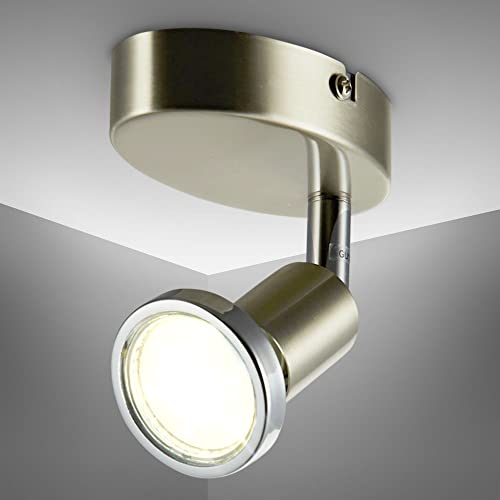 B.K.Licht Faretti LED da soffitto orientabili, include 3 lampadine GU10 da 3W, luce calda 3000K, plafoniera moderna da soffitto a spirale per cucina o entrata, metallo color nickel e cromato 230V IP20