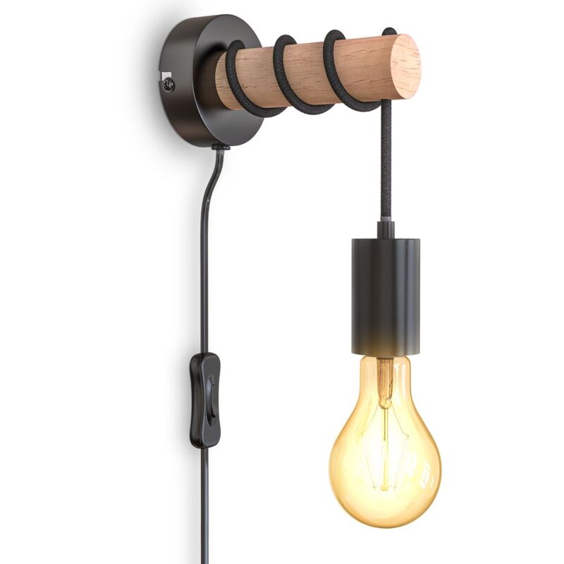 Retro: La lampada da comodino nera ha un fascio di luce in vero legno massiccio che crea un aspetto robusto e suggestivo. Combinata con la base in acciaio nero, la lampada è un'attrazione nel corridoio, nel soggiorno, nella scala, nella camera da letto, nel letto e nel corridoio Interruttore a cavo: La lampada di design è dotata di un pratico interruttore a cavo per una comoda accensione e spegnimento con una lunghezza totale di 190 cm. Ciò significa che la lampada da parete non richiede una presa di corrente preinstallata e può essere facilmente installata a posteriori. La lampada hyggelige Scandi non è dimmerabile Lampade: Si consiglia di utilizzare lampade a filamento o Edison per completare lo stile retrò della lampada. Questi LED con presa E27 non devono superare i 10 watt. L'illuminante mostrato non è incluso nella fornitura Montaggio: la base della lampada a parete ha un diametro di 96mm. La lampada ha una lunghezza totale di 170mm. La distanza tra i fori di montaggio è