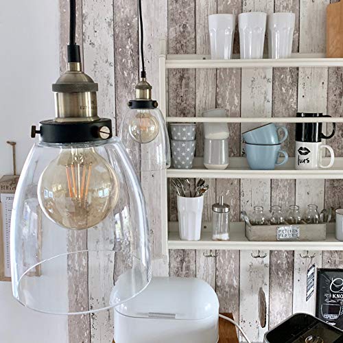 B.K.Licht Lampada a sospensione vintage in metallo e vetro, lampada da soffitto con attacco per lampadina E27 (non inclusa), lampadario stile industriale, plafoniera moderna per sala da pranzo IP20