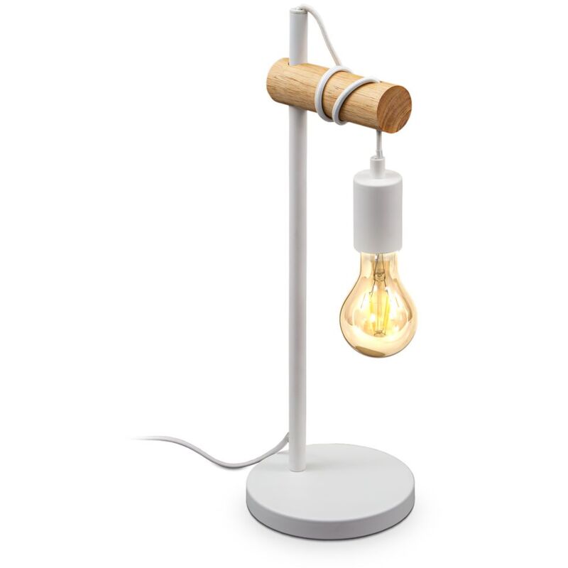 Retro: La lampada da comodino bianca ha un fascio di luce in vero legno massiccio che crea un aspetto robusto e suggestivo. Combinata con la base in metallo bianco, la lampada è un elemento che attira l'attenzione in ufficio, nello studio, nella camera da letto, nella stanza dei bambini, nel corridoio e nell'ingresso. Interruttore a cavo: La lampada di design ha un pratico interruttore a cavo per una comoda accensione e spegnimento con una lunghezza totale di 170cm. La lampada Hygge-Scandi retro non è dimmerabile Lampade: Si consiglia di utilizzare lampade a filamento o Edison per completare lo stile retrò della lampada. Questi LED con presa E27 non devono superare i 10 watt. L'illuminante mostrato non è incluso nella fornitura Dimensioni: La lampada da tavolo ha un diametro di 160mm ad un'altezza di 463mm. La trave di legno ha una sporgenza di 145 mm Servizio clienti: La soddisfazione dei nostri clienti è molto importante per noi. Se avete domande o commenti, saremo lieti di