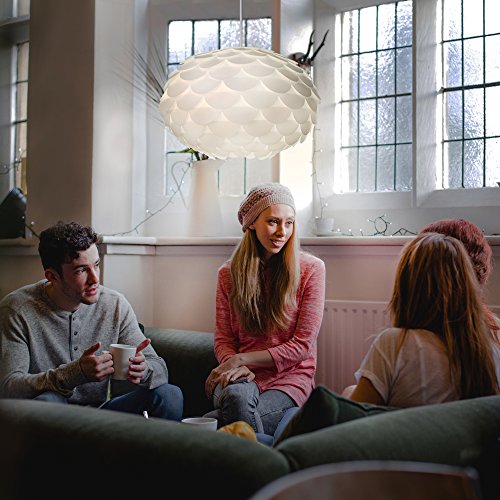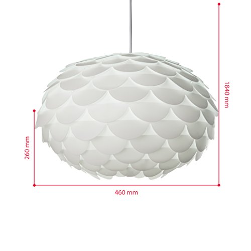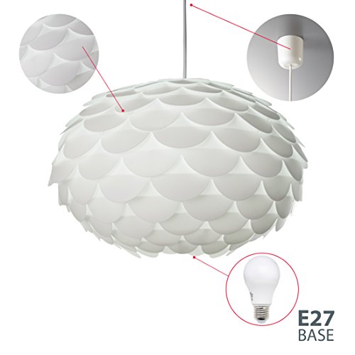 B.K.Licht Lampadario moderno, lampada a sospensione per sala da pranzo, lampada da soffitto in plastica per camera da letto e cameretta, bianca, adatta per lampadina LED E27 non inclusa, 230V IP20