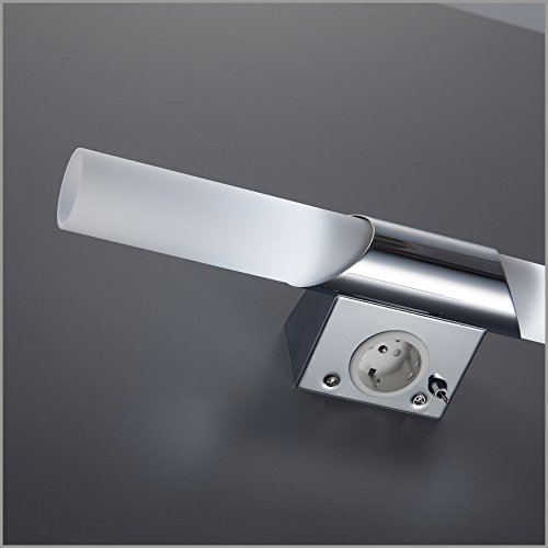 B.K.Licht Mithra, Luce LED da specchio, lampada da muro per bagno con 2 lampadine E14 incluse, luce calda 3000K, 2x470Lm, corpo metallo cromato e vetro bianco