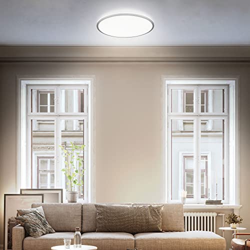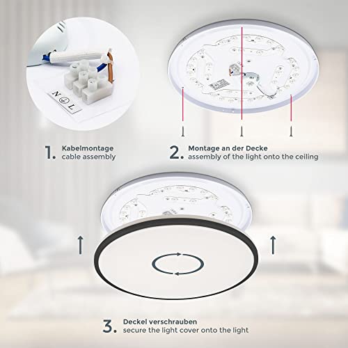 B.K.Licht Plafoniara LED, 24W, diametro 38cm, luce bianca neutra 4000K, 3000Lm, Lampada da soffitto con illuminazione indiretta, Nero