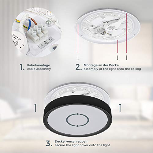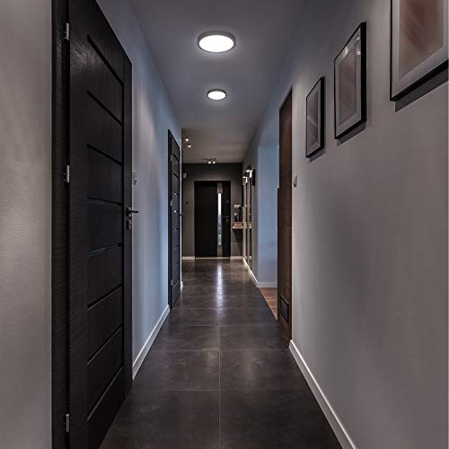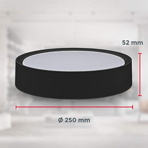 B.K.Licht Plafoniera LED 12W, luce bianca 4.000K, diametro 25 cm, 1.200 Lm, Lampada da soffitto piccola in plastica nera opaca per ingresso o corridoio, IP20