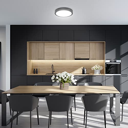 B.K.Licht Plafoniera LED 18W, luce bianca neutra 4.000K, diametro 28 cm, 2.000 Lm, Lampada da soffitto nera
