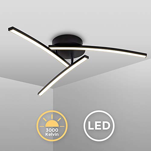 B.K.Licht Plafoniera LED, luce calda 3000K, LED integrati 1650Lm, 15W, Lampada da soffitto moderna per camera o cucina, lampadario nero IP20