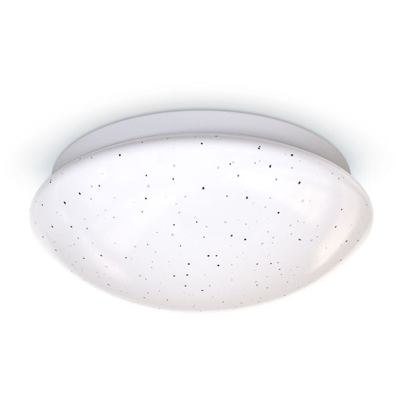Decorazione: la lampada da soffitto LED rotonda ha un effetto glitterato e crea un'atmosfera accogliente con la luce calda 3000 Kelvin di intensità 700 Lumen e un consumo di 10 Watt (Attenzione: questa lampada con decoro a stelle non ha effetto di proiezione) Luce personalizzabile: il lampadario è dimmerabile su 4 stadi ed è possibile scegliere tra luce calda 3000 Kelvin o colorata rossa, verde e blu o un susseguirsi automatico di vari colori con transizione tra di essi. Con la modalità luce notturna la plafoniera crea una tenue luce calda. Non collegare la lampada a un dimmer esterno Telecomando: con il telecomando a infrarossi in dotazione è possibile: accendere e spegnere la luce On/off;