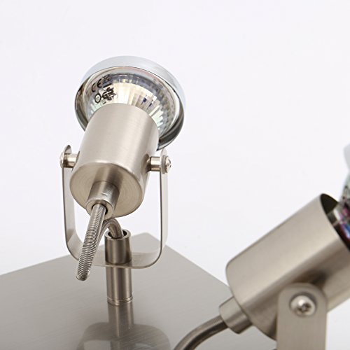 B.K.Licht Plafoniera LED con faretti orientabili, include 4 lampadine LED GU10 da 5W 400 lm, luce calda 3000K, metallo color nickel opaco, lampada da soffitto moderna per cucina o camera, 230 V, IP20