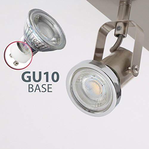 B.K.Licht Plafoniera LED con faretti orientabili, include 2 lampadine LED GU10 da 5W 400 lm, luce calda 3000K, metallo color nickel opaco, lampada da soffitto moderna per cucina o camera, 230 V, IP20