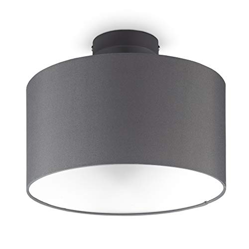 La plafoniera con 1 punto luce ha un paralume rotondo in tessuto grigio all'esterno e bianco all'interno e crea una piacevole e delicata illuminazione